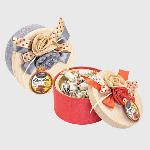 La Scatola Elodie è il regalo perfetto per chi ami. Elegante e raffinata, rivestita in tessuto, e all'interno un vassoio dorato con deliziose praline assortite di cioccolato al latte crema nocciola, fondente crema arancia e al latte con crema amaretto.